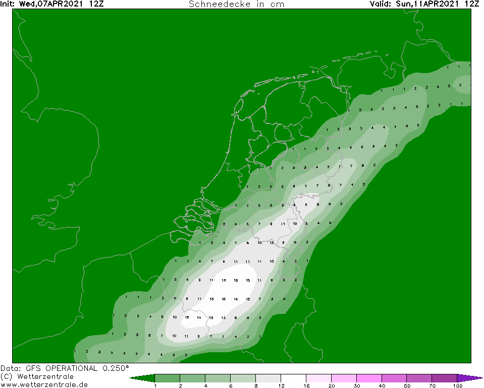 GFS+GEM tekenen de neerslagzone nu veel oostelijker in dan vanmorgen.