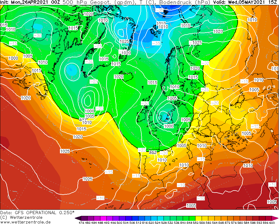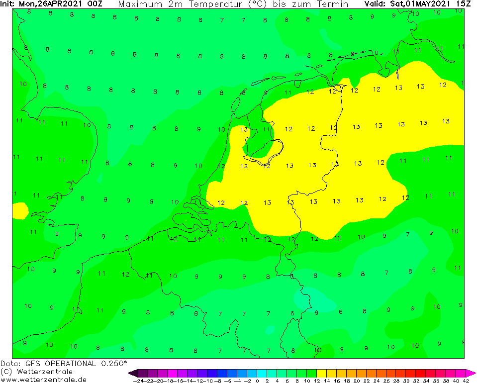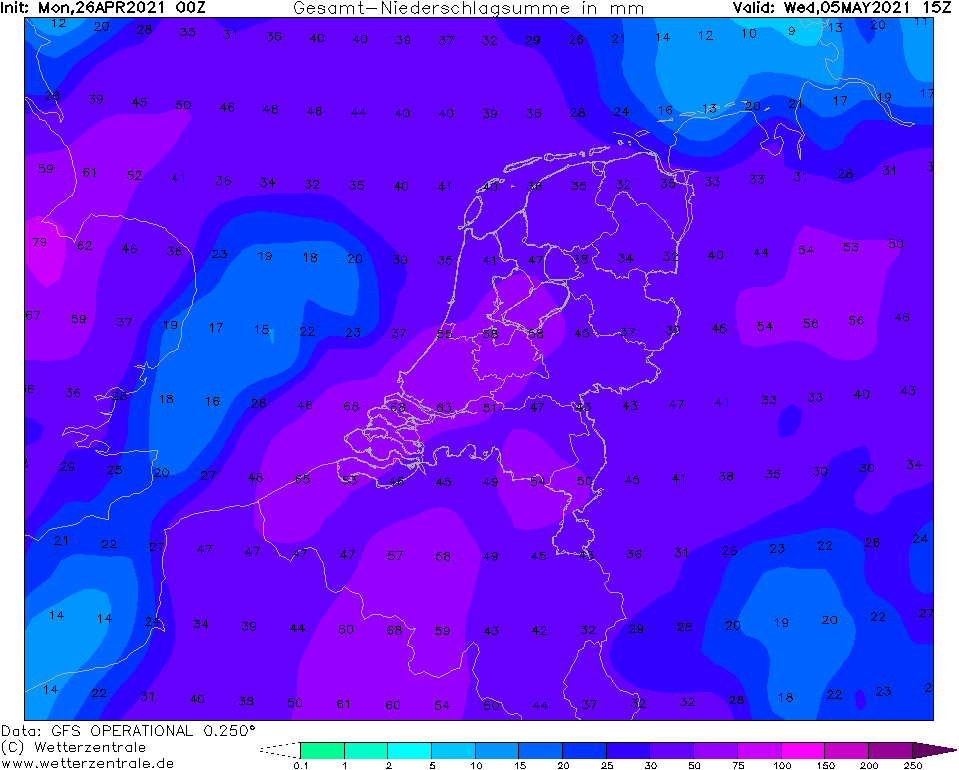 Rond Bevrijdingsdag tolt er zelfs een depressie boven onze omgeving. Komende 10 dagen heerlijke neerslagsommen, geen kans op significante neerslagtekorten.