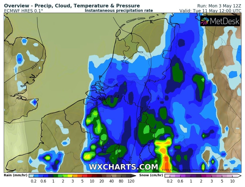 Op 120 uur dat de verwachtte neerslag op die termijn uitkomt 1% kans