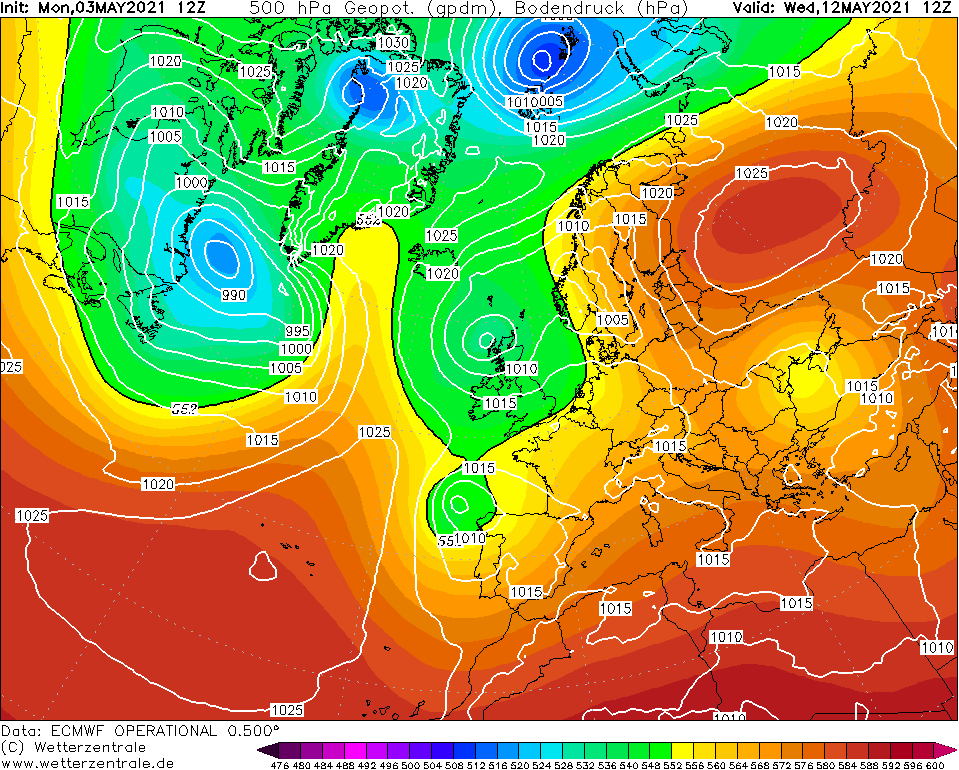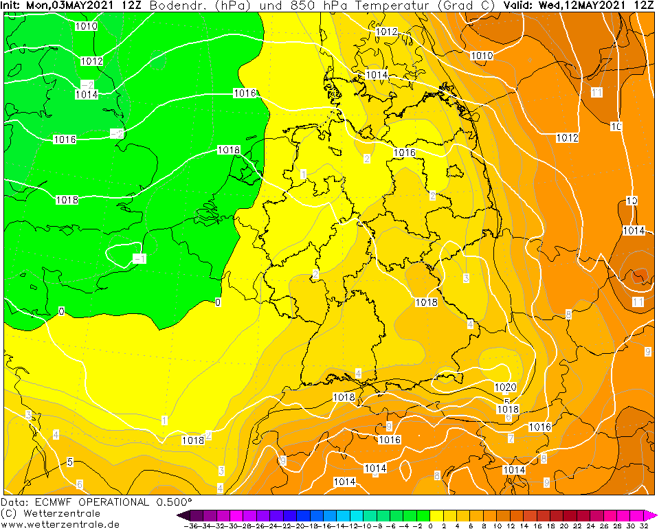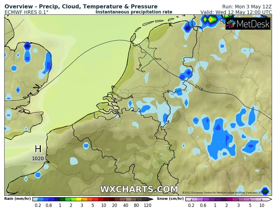 Twee keer (grootschalig) onweer hier volgens ECMWF.