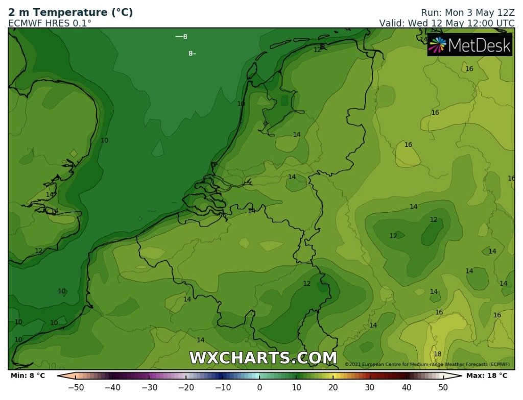De verzachting komt overtuigend het land binnen vanuit ZW