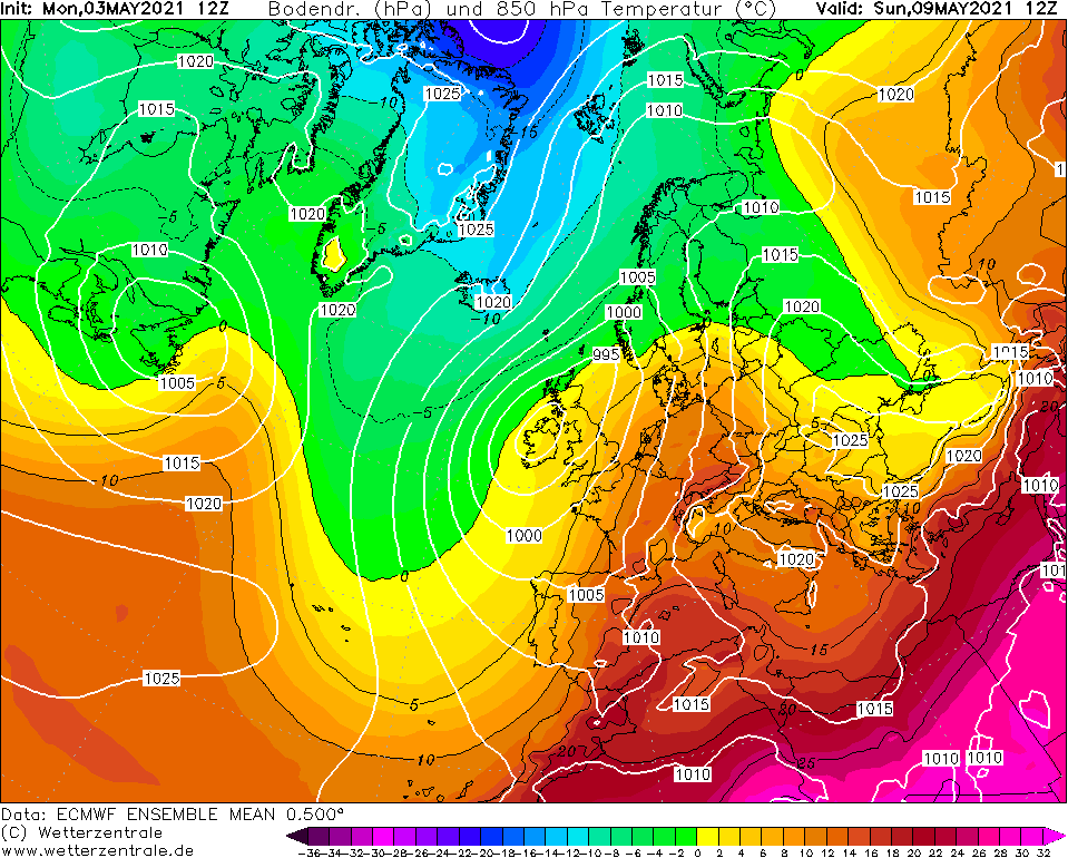EC12 moyenne alleen zondag warmte en maandag afgekoeld.