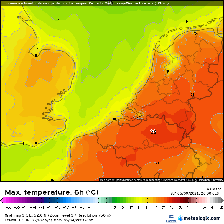 Zowel zondagochtend als op zondagavond zou er volgens ECMWF op grotere schaal onweer kunnen optreden. De signalen zijn t.o.v. gisterenavond zelfs nog wat sterker geworden. Net als gisterenavond ligt de nadruk op het westen van de Benelux, maar dit kan natuurlijk nog gemakkelijk verschuiven. Op zondag daarbij ook warm met 23 tot 26 graden