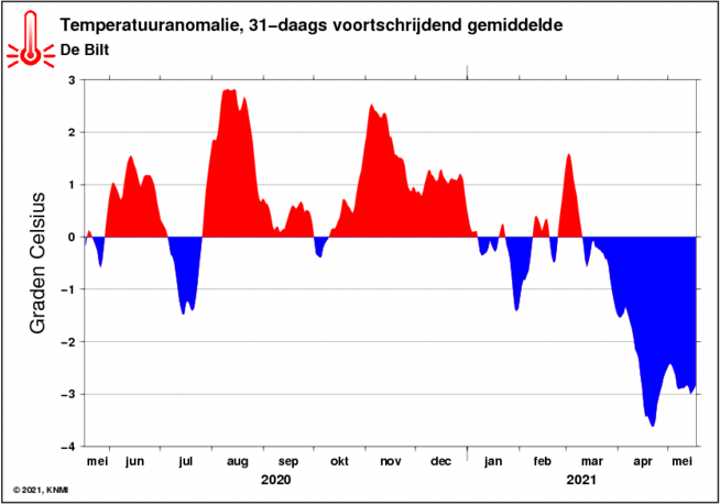 Eens slaat het om, maar dat kan ook pas in augustus gebeuren. Zie onderste kaartje. Een negatieve afwijking waar nog geen enkel rood bergje bij in de buurt kwam. Een stunt van heb ik jou daar die ik nimmer meer hoop mee te maken.