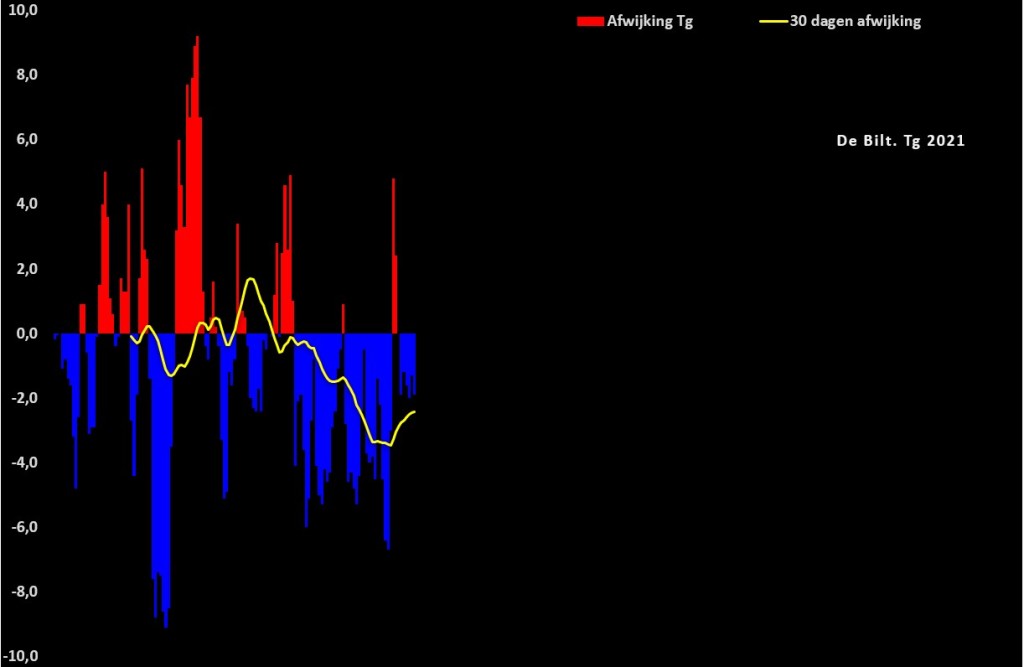 Grafiek laat afwijking ten opzichte van de normaal zien van de Tg.