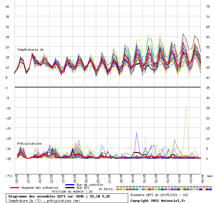 Vervolgens is het volgens de Oper op 29,30 en 31 mei weer koel maar die zelfde Oper ligt dan (fors) onder het gemiddelde van het ensemble.