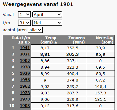 Volgens mij zijn april en mei met huidige pluim koudste sinds 1941....
