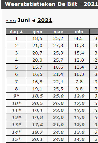 zo buitensporig warm ziet onderstaand kaartje er ook weer niet uit. Wel bijna continu ruim boven de norm, ook de minimumtemperaturen.