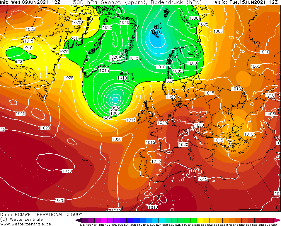 ECMWF 96 uur, verkoeling in het weekend (nog) van korte duur
