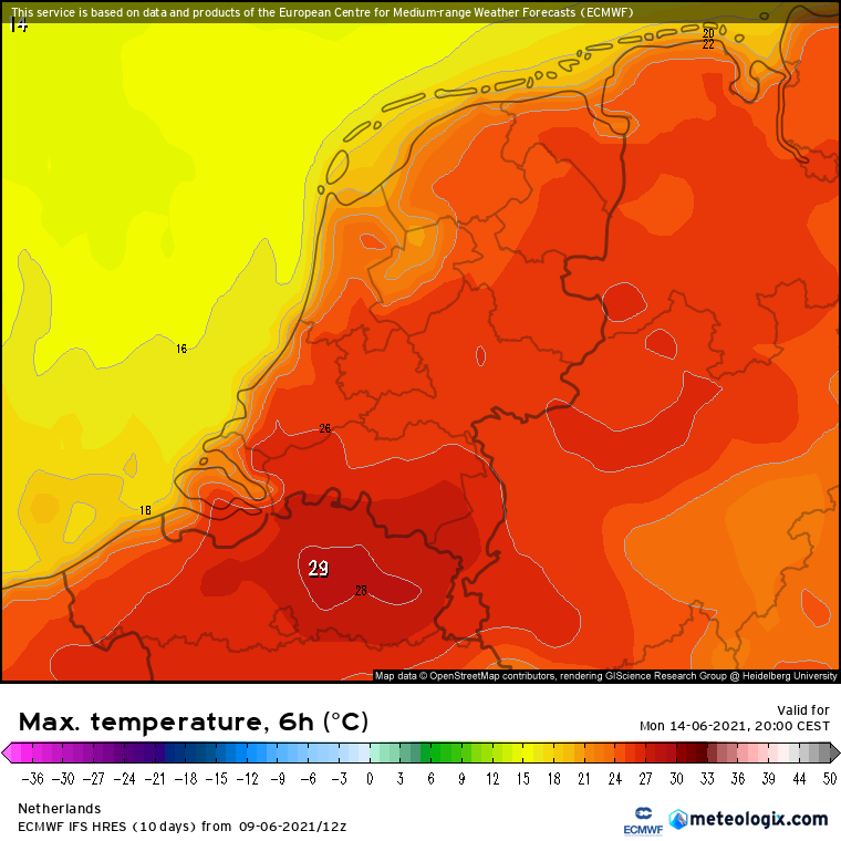 Woensdag 30 - 35 graden en enkele lokale onweersbuien.