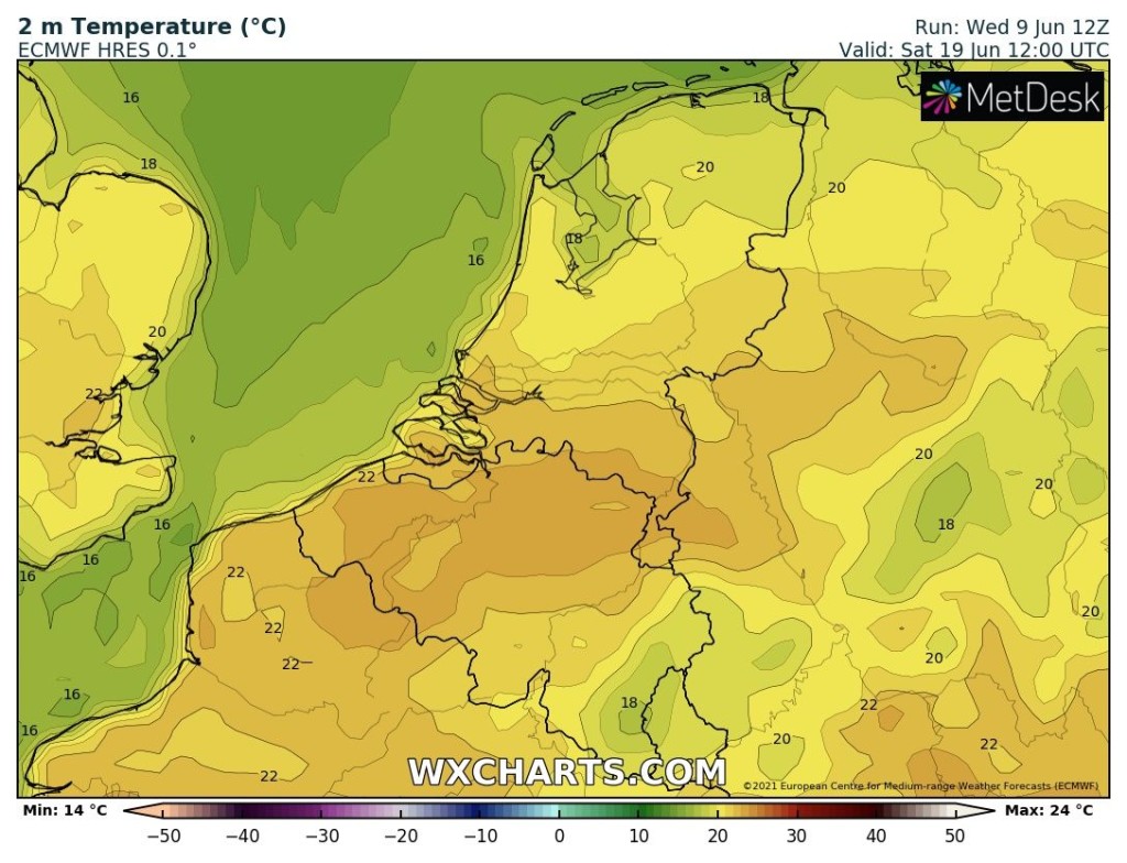 Woensdag 30 - 35 graden en enkele lokale onweersbuien.