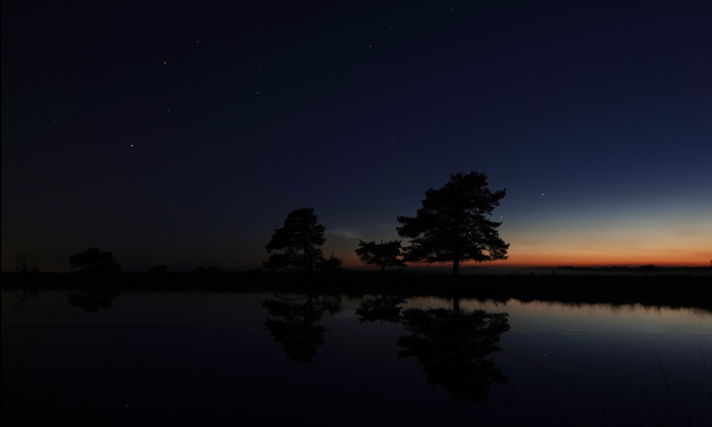 Hier wel een mooie spiegelende voorgrond op de heide maar het NLC