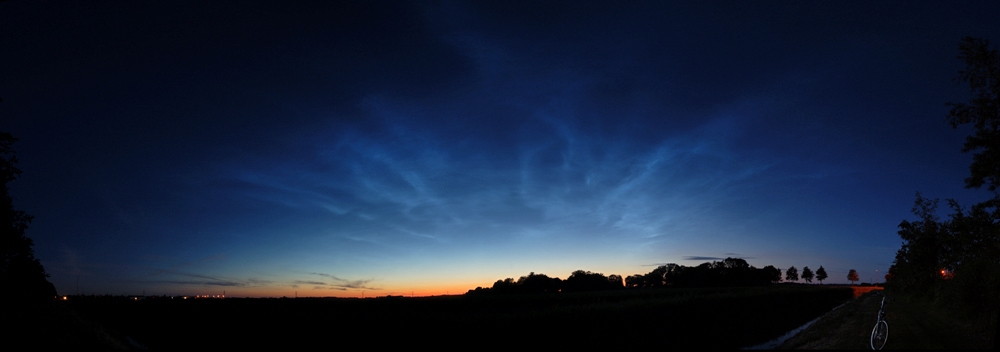 Meestal zitten NLC's vlak boven de horizon. Die dag zat een groot veld tot 90graden boven de horizon.