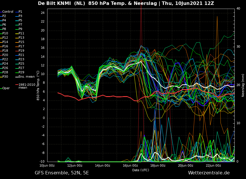 GFS ensemble 12z: Na 16 juni lijkt er een overgang te komen