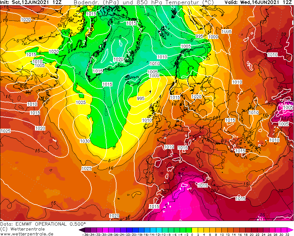 EC 12z: zeer warm tot in iedere geval volgend weekend.