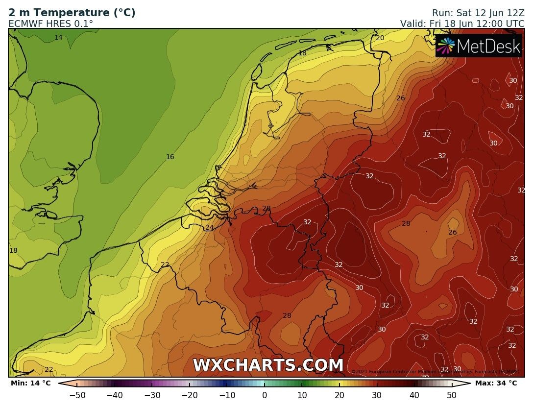 EC 12z: zeer warm tot in iedere geval volgend weekend.
