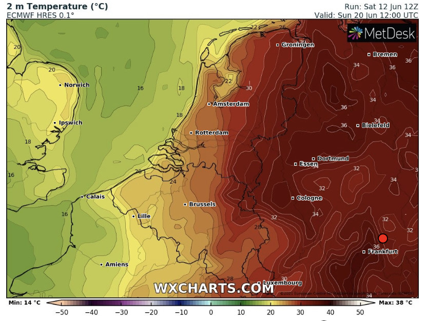 Re: Extreme hitte vlakbij (Duitsland) op 192 uur vooruit.