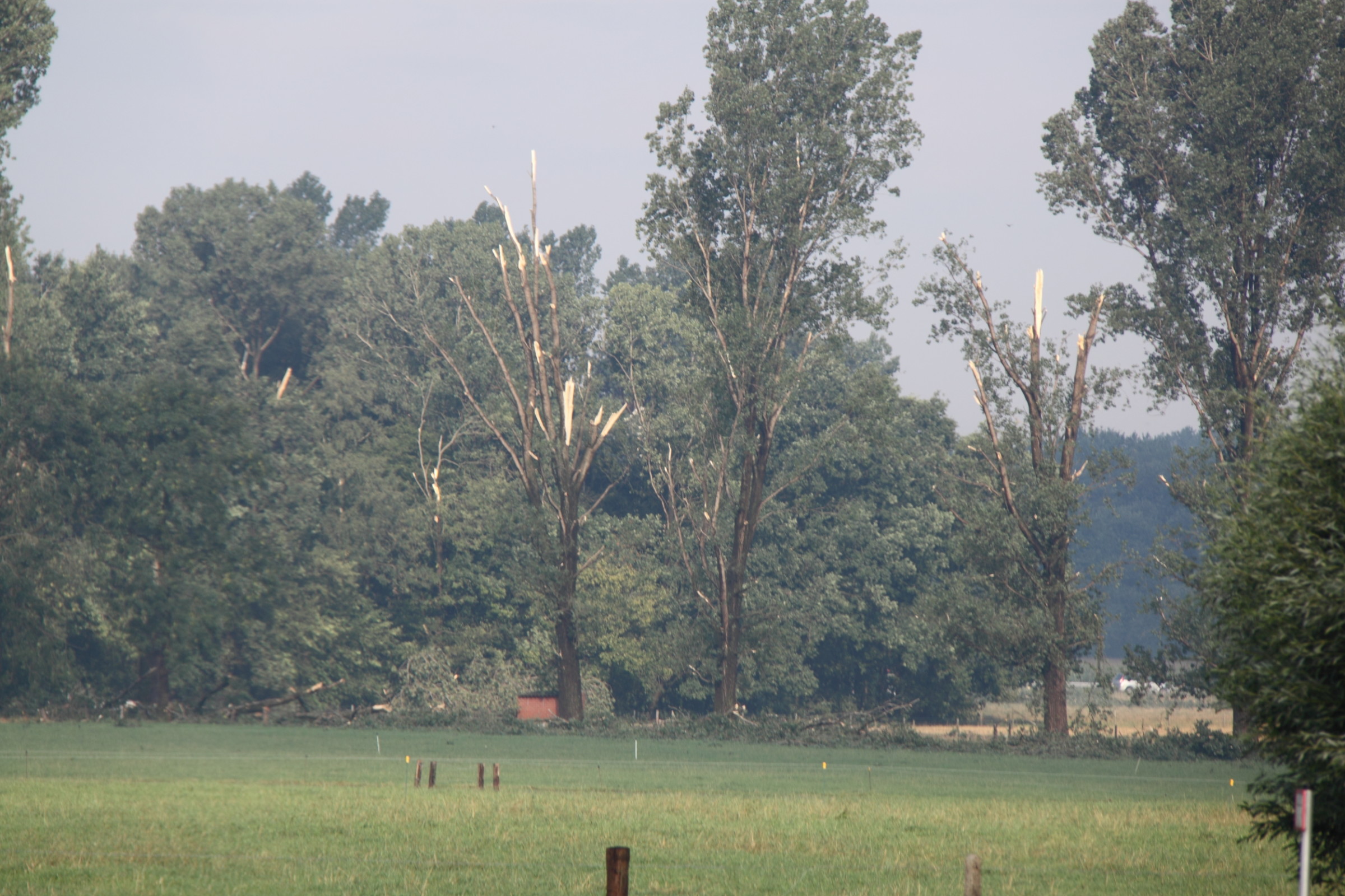 2015 betrof Torhout en Balie Brugge (Ruddervoorde). Breed schadespoor met 2 smalle stroken met extra zware schade. 1 zwaar smal spoor door Groenhove en 1 wat verderop in Balie Brugge over het huis van regisseur Jan Verheyen. Zie ook foto zware schade aan zijn huis. Er was sprake van een hoos al leek de schade meer op een zeer zware valwind. De ruiten lagen er uit aan de windluwe zijde maar de voordeur aan de windkant die op slot was is open gevlogen = winddruk in het huis?.