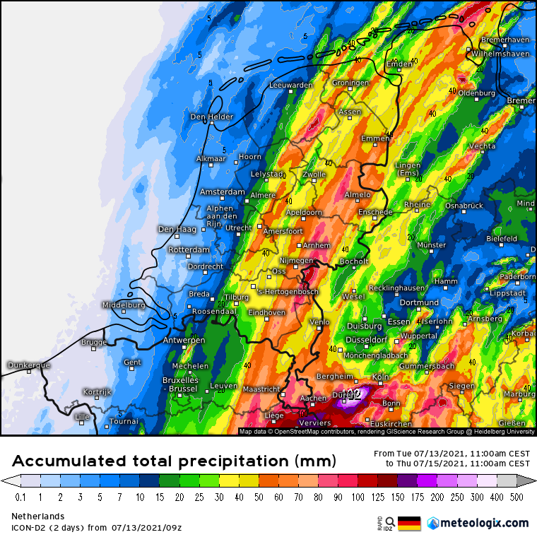 Icon D2 extreem voor Zuid-Limburg met neerslag.