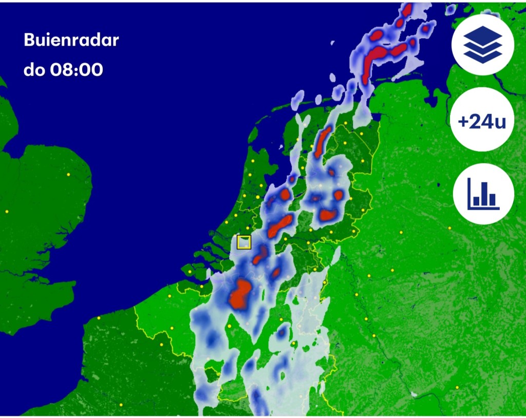 Zou midden Nederland ook geen overlast kunnen krijgen als deze verwachting uitkomt.