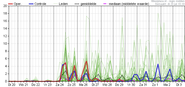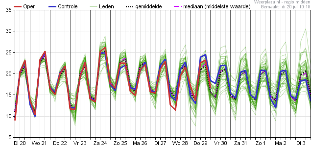 Geen hoogstandjes in de pluim en vanaf het weekend toenemend wisselvallig. Later in de periode steeds meer signalen voor de koele condities; wind krijgt de neiging om de westhoek op te zoeken. Zomer dan ver weg. Woensdag en zaterdag springen eruit als de enige dagen dat er een mogelijkheid is op 25+ graden.