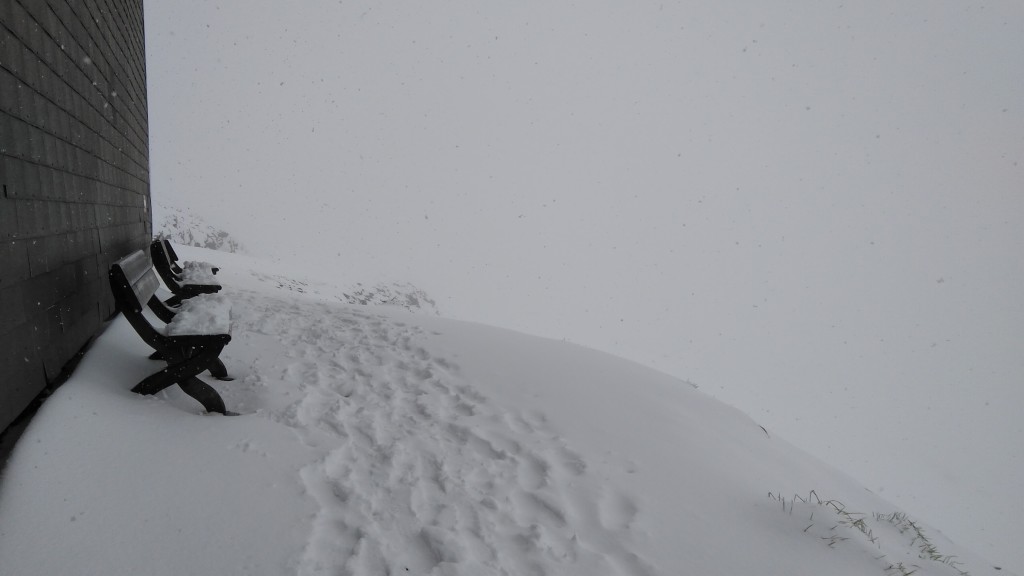 En dat op 'amper' 2600m. De Ankogelbahn omhoog gegaan en het was nog volop aan het sneeuwen, er lag tussen de 15-20cm, maar wat hoger zal dat nog meer geweest zijn. Sneeuwdekgrens lag rond 2300m. Het deed raar om drie dagen van de langste dag in de sneeuw te staan in de middag. De meeste wegen in de Alpen gaan natuurlijk niet zo hoog en het was ook een uitzonderlijke setting. Dus sneeuwkettingen zullen nog wel net niet nodig zijn. Een winterjas en handschoenen zijn wel steeds nuttig.