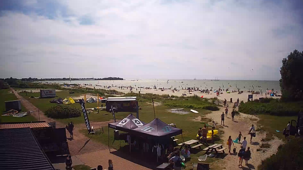 Hier aan het IJsselmeerstrand gezellig druk zo te zien.