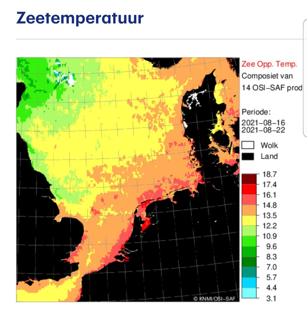Vlak voor de kust idd rond 16 graden. Maar al snel 12 tot 15 graden.
