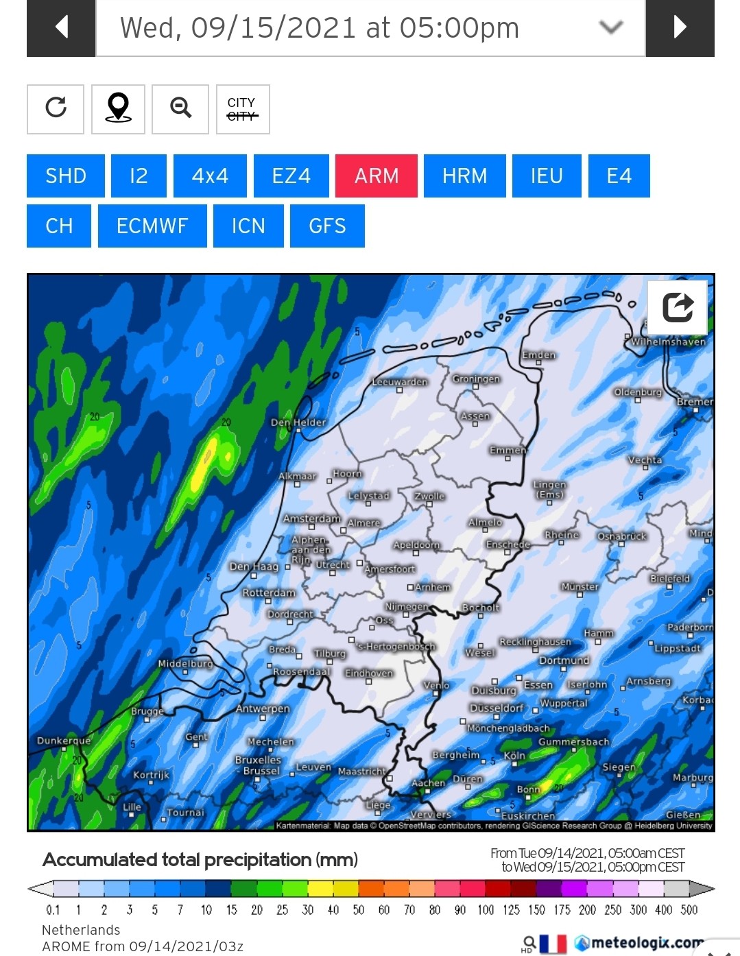 Neerslag tot eind morgenmiddag, grote kans dat het op veel plekken gewoon droog blijft of bij een of twee mm. Andere modellen hebben soms meer neerslag maar dan wel oneerlijk verdeeld. Veel spannends zal er denk ik niet komen.