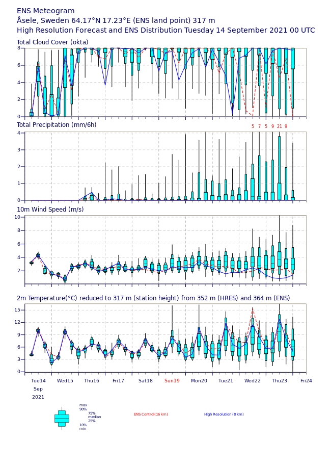 Ensembles voor regio van m'n vader, centraal Zweden op 64e breedtegraad. Verder natuurlijk niet gek dat de winter medio september nog ver weg is.