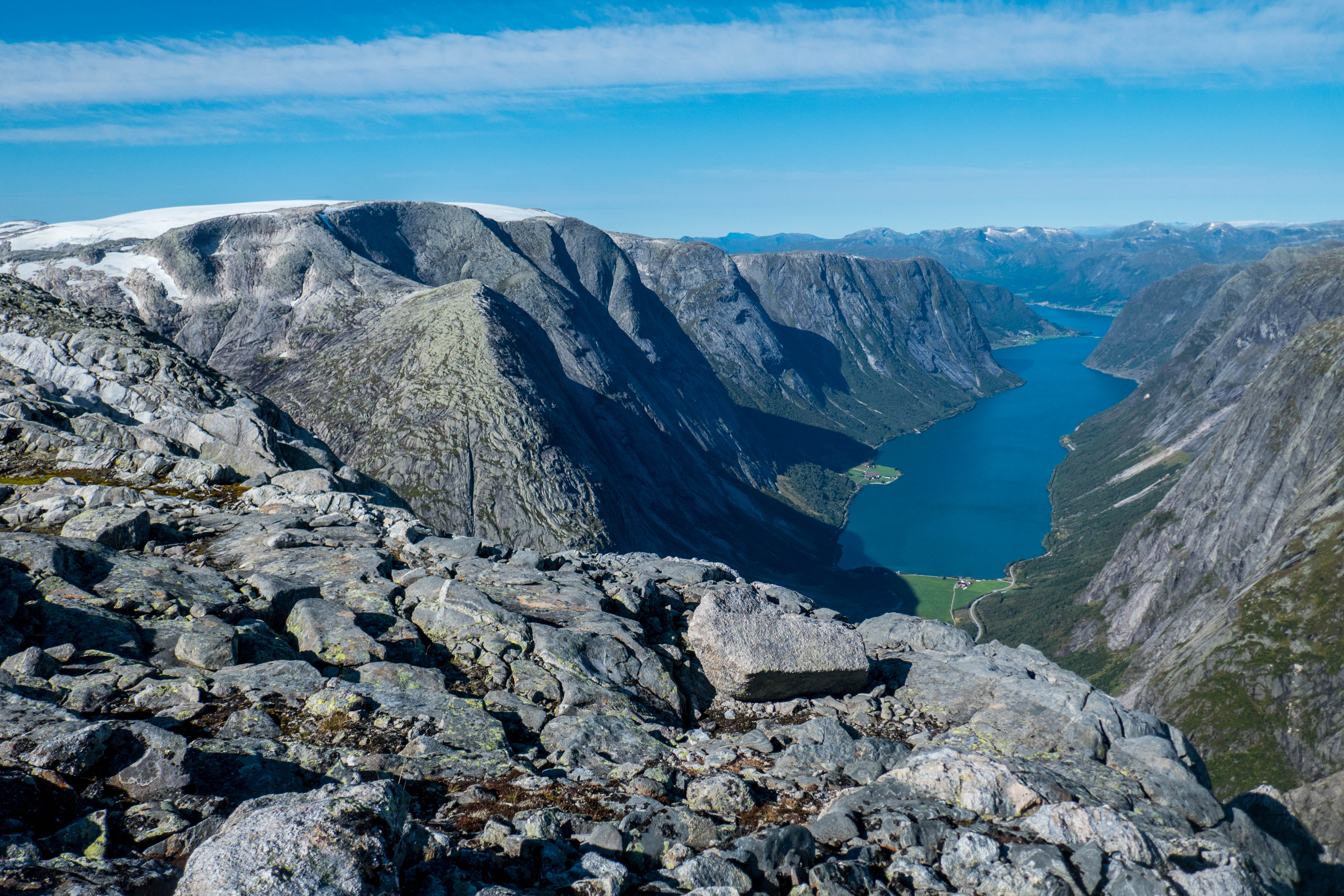 Aan het westelijke uiteinde van die zes kilometer lange tunnel begint een paadje. ''Het steilste pad van heel Noorwegen'', aldus de lokale boerin. Het kan best kloppen, want van 400 meter naar 950 meter loopt het pad door een couloir. Nou ja, pad: eerder een trap. Aangelegd door Nepali, die door Noorwegen worden ingehuurd in het kader van een hulpprogramma. Het oude pad spoelde weg door water en lawines. De verberingen zijn in 2014-2016 aangebracht en lopen erg gemakkelijk - als een trap.