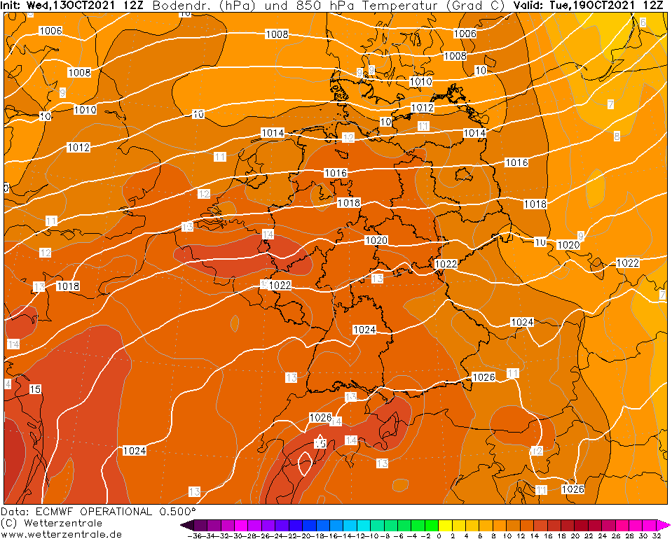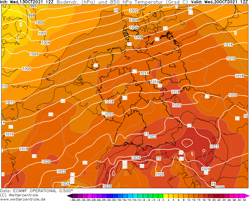 20 oktober lijkt volgens deze oper de warmste dag te gaan worden