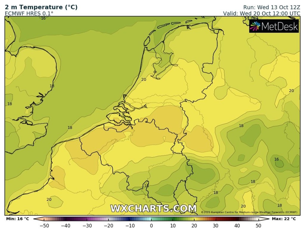 20 oktober lijkt volgens deze oper de warmste dag te gaan worden
