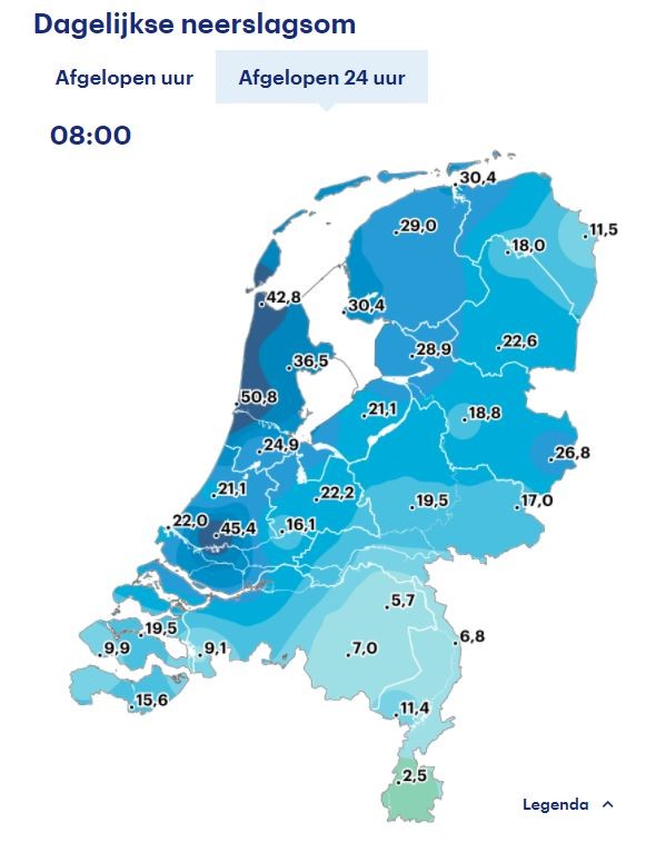 AFgelopen 24 uur op Rotterdam airport 45 mm, bij mij 39 mm. Herfst in optima forma, al valt de wind nu wel mee.