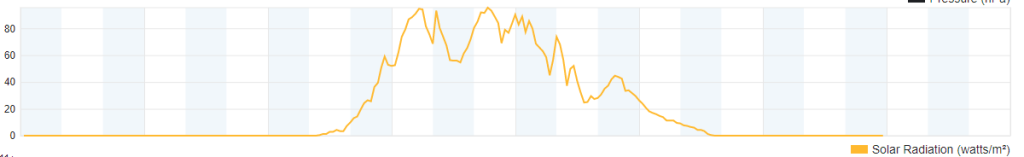 Ik bied vandaag 33W/m2, erg grijs en donker dagje zo.
