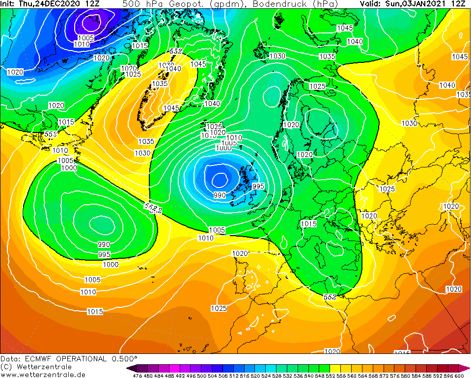 Wanneer er sprake is van een negatieve NAO index. Oftewel (relatief) hoge druk op hoge breedtegraad in de noordelijke Atlantische Oceaan, bij Groenland en IJsland en lage druk op lagere breedten bij de Azoren. En dat het hogedruksysteem wat deze negatieve afwijkingen veroorzaakt tegelijkertijd vrij westelijk richting het noordoosten van Canada ligt. Daardoor stroomt er veel kou bij IJsland de oceaan op, vaak met een noordoostelijke stroming en dat resulteert bij ons in een westcirculatie.