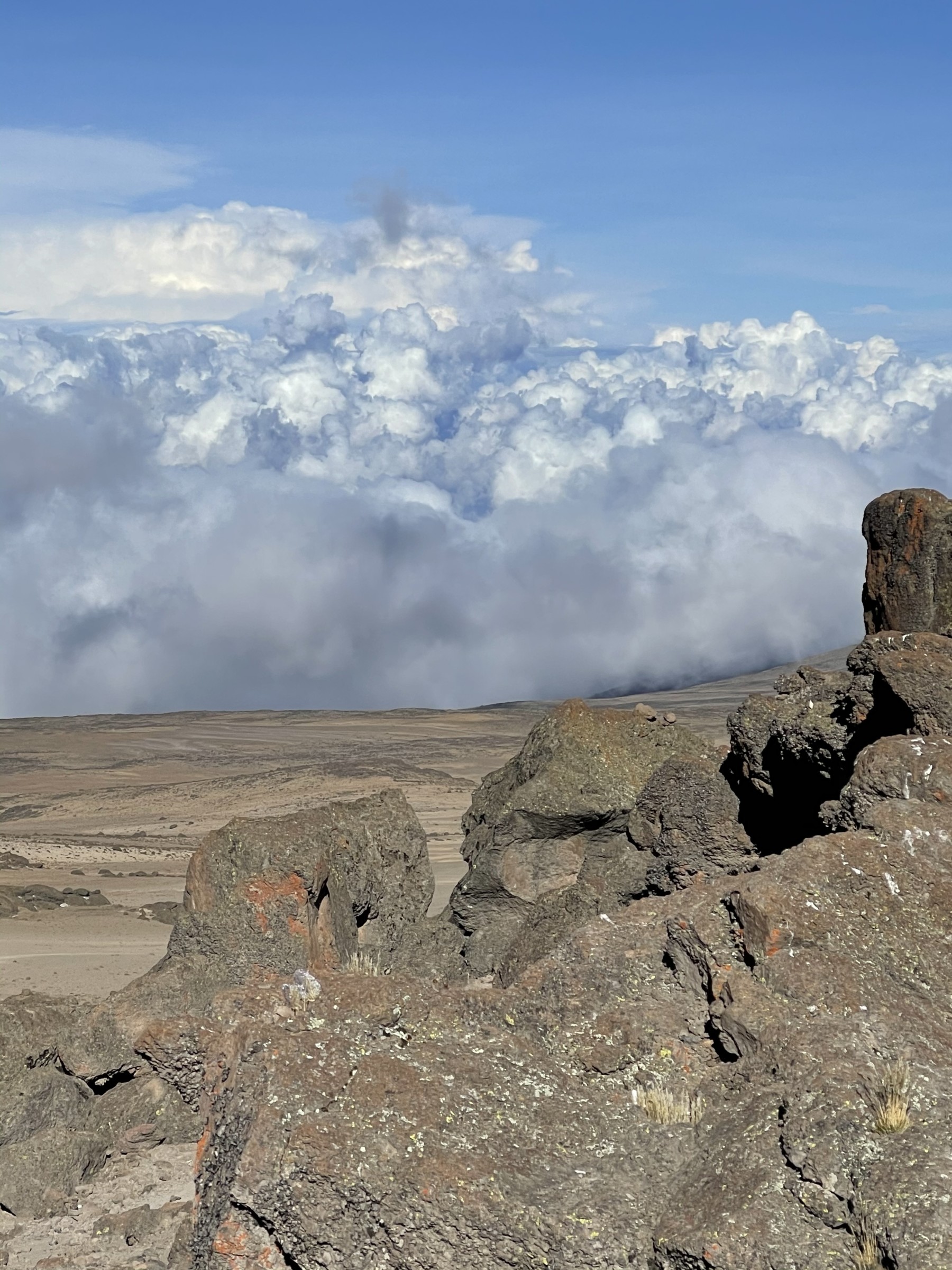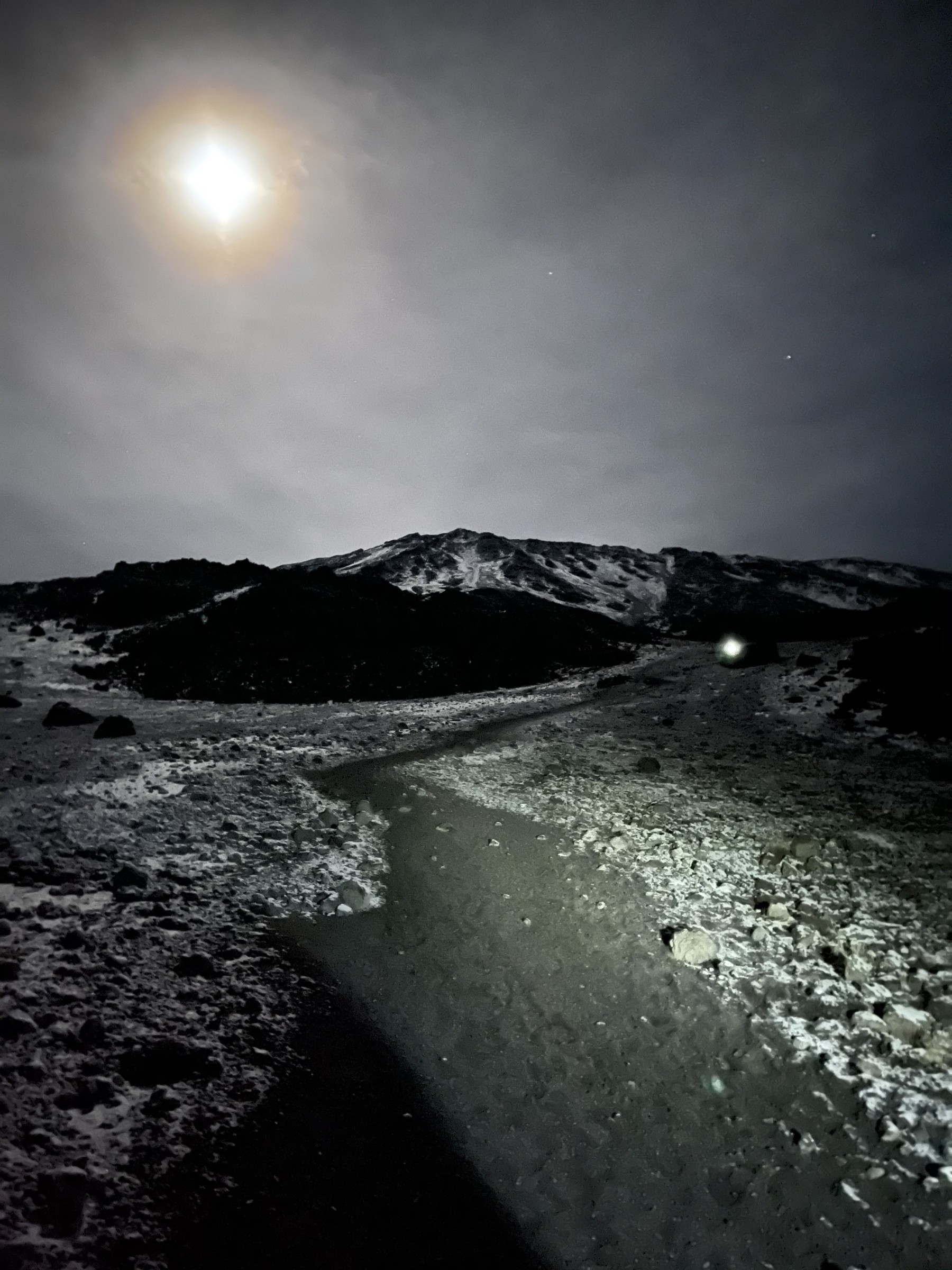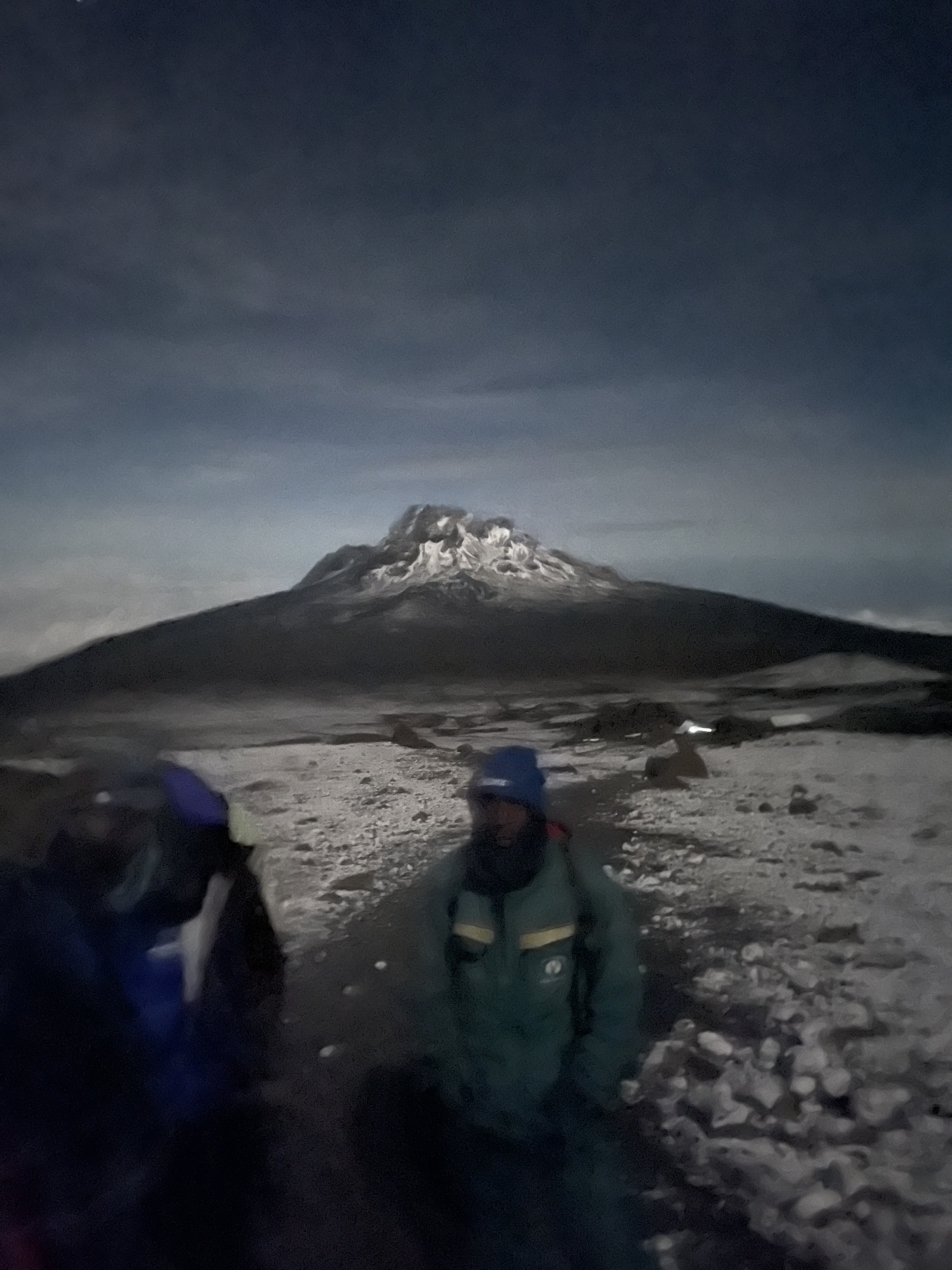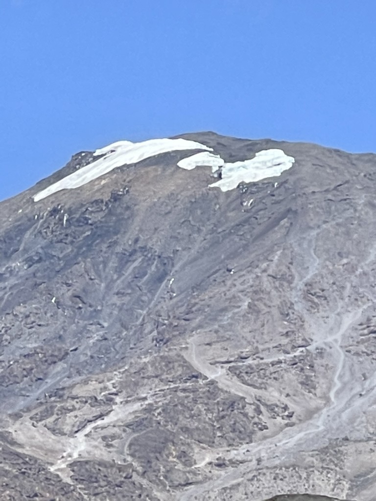 We waren daar gisteren, tijdens een poging om de top te bereiken en het had net een paar uur gesneeuwd iets wat niet zo vaak gebeurt in deze tijd. De kleine regentijd staat op het punt te beginnen. Oja het is me niet gelukt de top van 5895 te halen. Wegens darmproblemen maar ook vond ik het moeilijk adem te halen. We kwamen tot 5300 meter, het was toen rond 02.30 denk ik. De foto’s zijn met een IPhone genomen dus excuus voor de mindere kwaliteit. Ik zal in Nederland nog een selectie plaatsen van foto’s genomen met een spiegelreflex.![]()