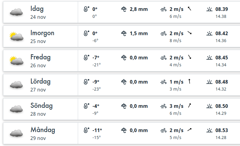 Ook hier gaat de kou goed binnen komen. Zelfs onder de -20 , wat fors is voor november. Zin in.