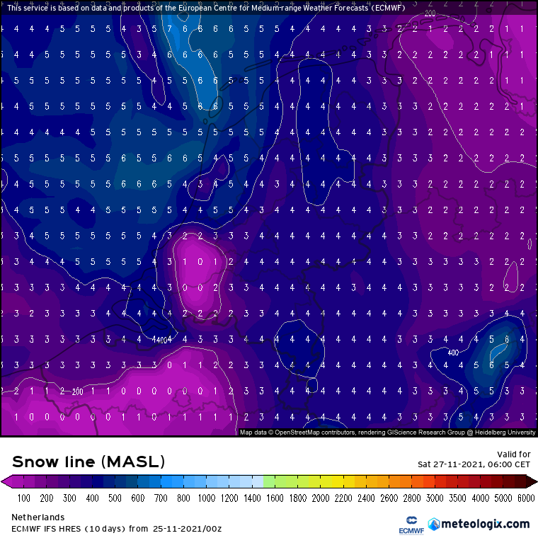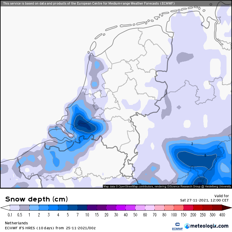 Zaterdagnacht- en ochtend volgens ECMWF.