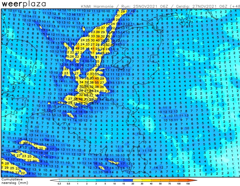 Harmonie is zeer fors met de regen. Plaatselijk tot 50 a 60 mm komende 48 uur!!