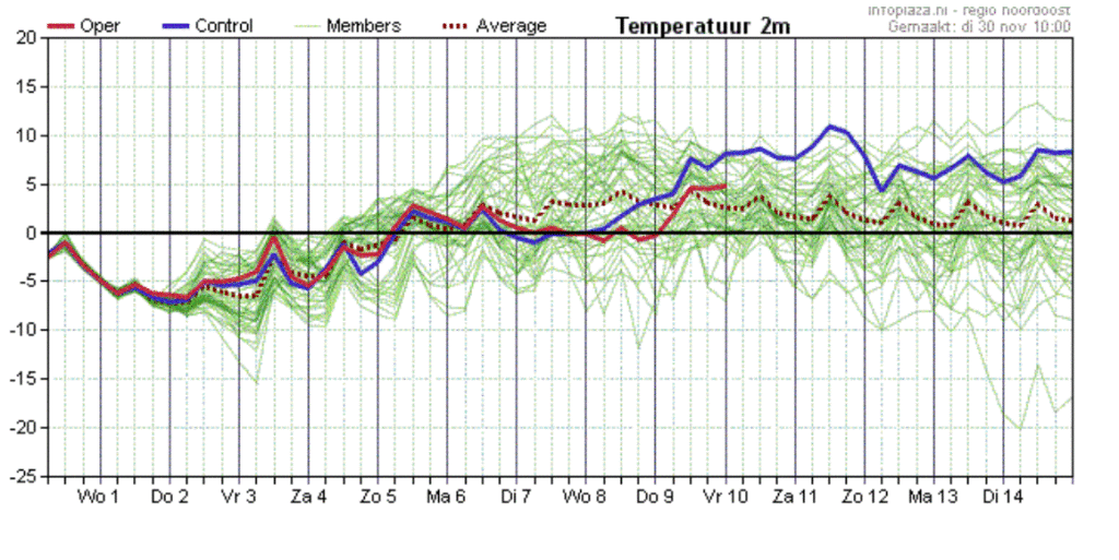 De visie van weerman Jan Visser hedenochtend tot en vanaf Sinterklaas