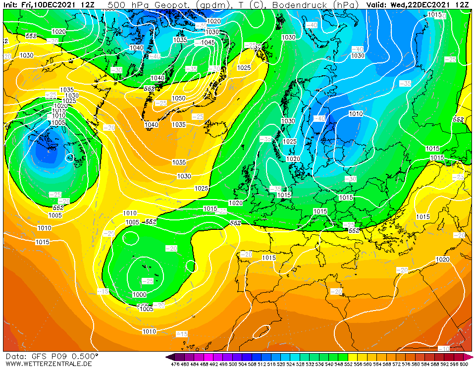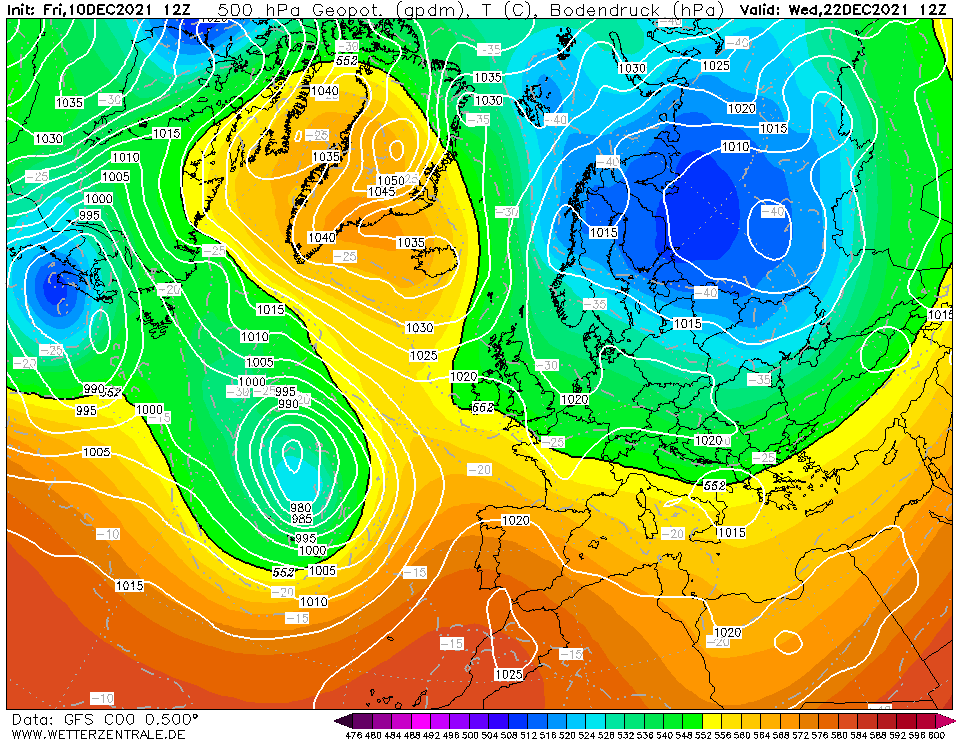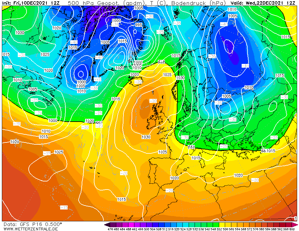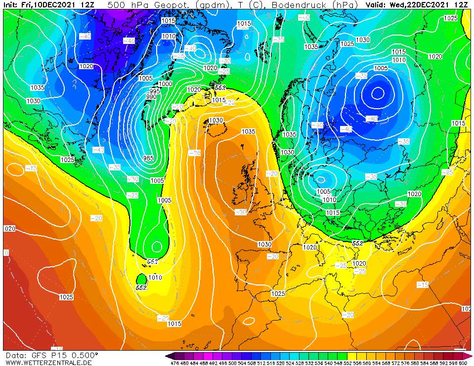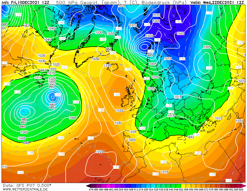 In het binnenland duidelijk een koud cluster richting kerst