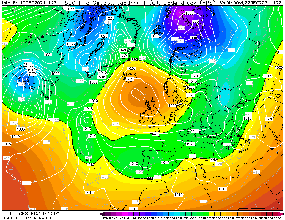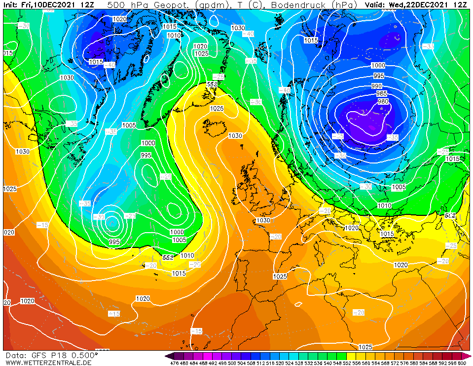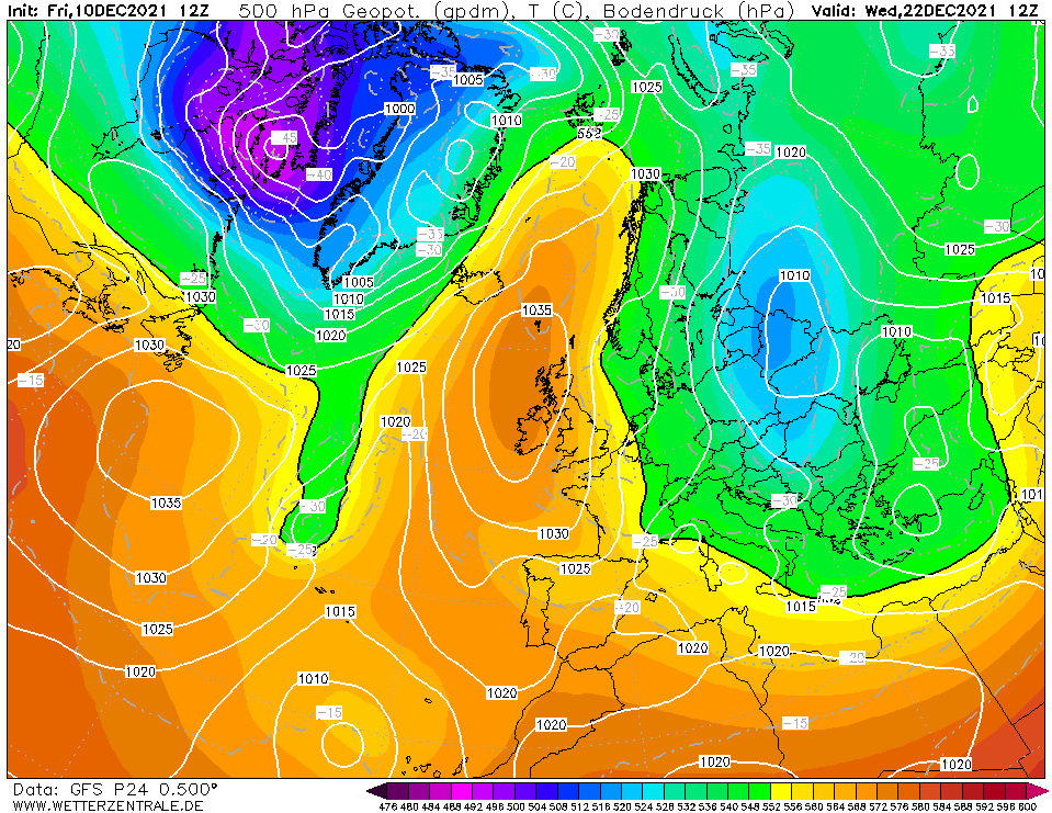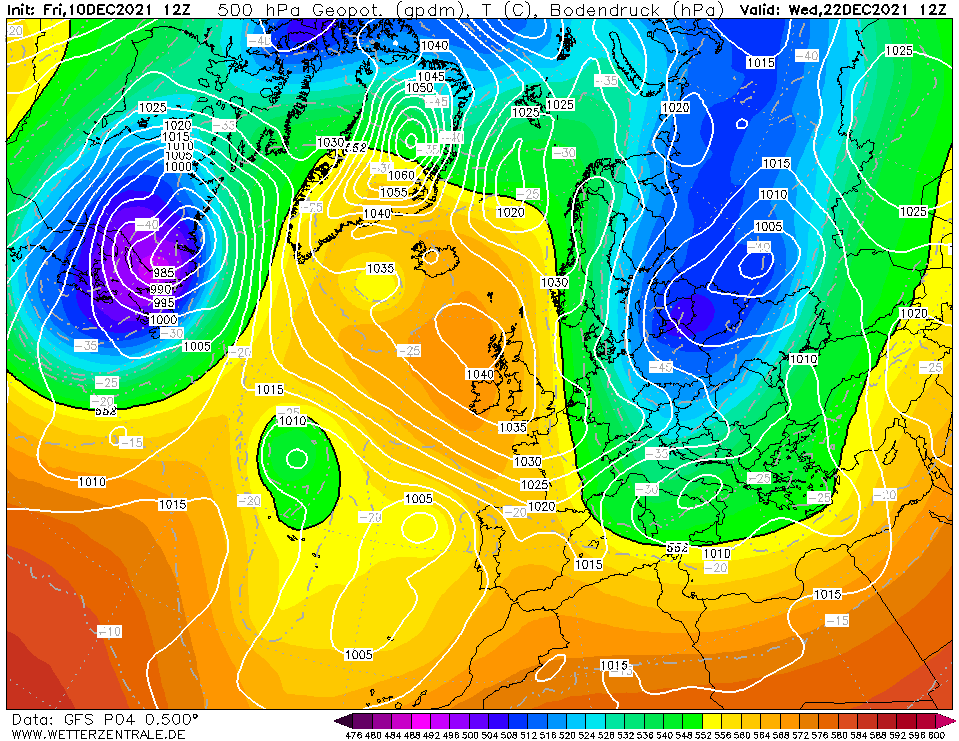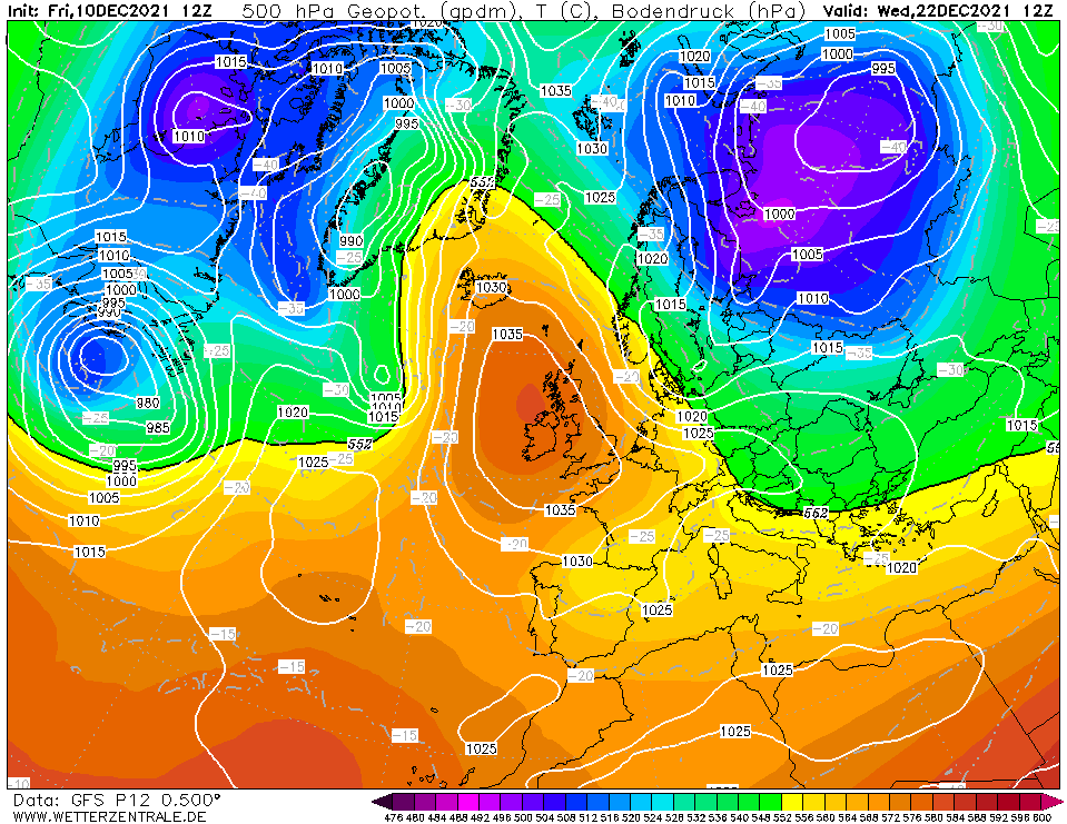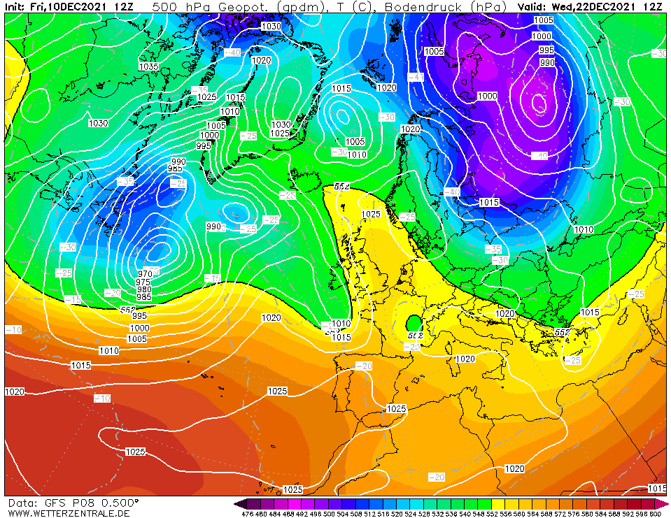 In het binnenland duidelijk een koud cluster richting kerst
