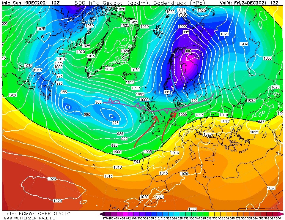 maar hoever komt de invloed...Voorlopig zadel/vore verbinding te noordelijk op de Noordzee:
