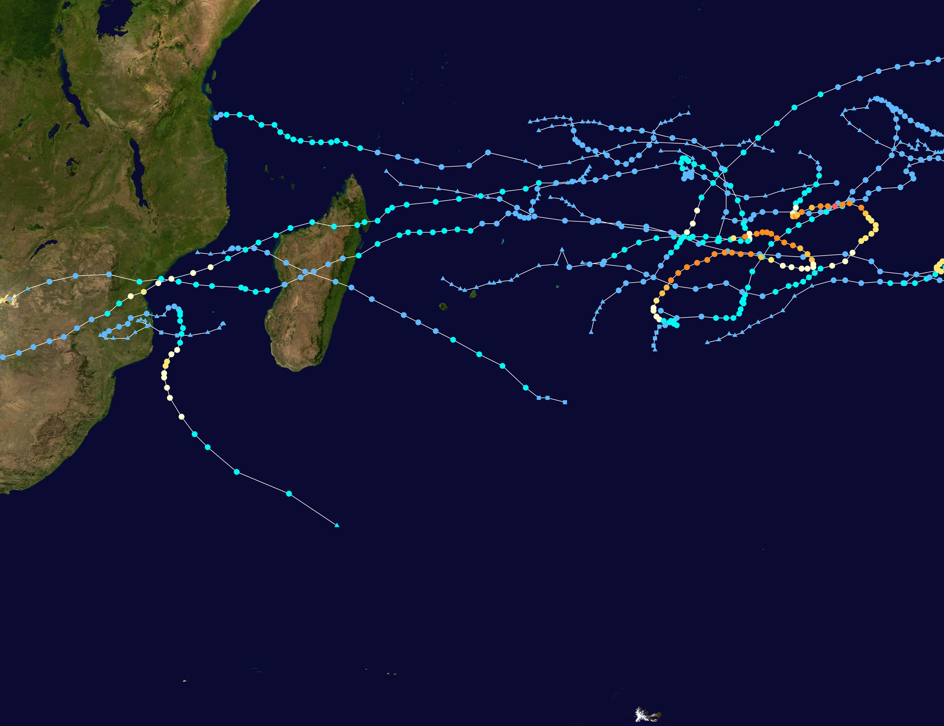 *Sterkste storm: Faraji (Categorie 5 cycloon - 260 km/h - 925 hPa)