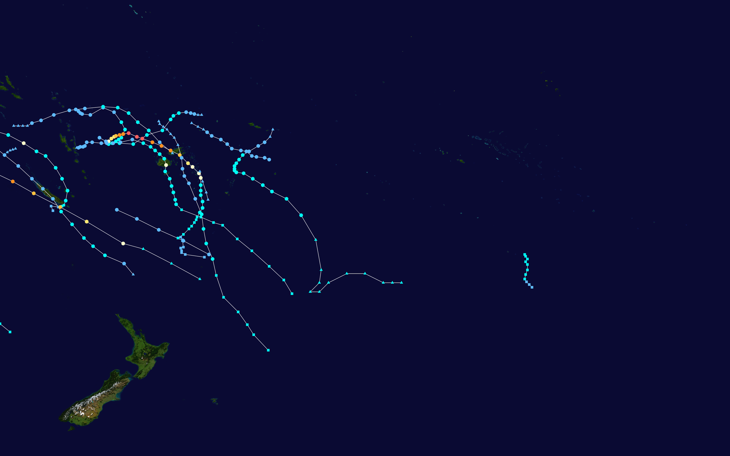 De laatste officiële regio die ik behandel is de Zuid-Pacifische Oceaan. Dit seizoen loopt gewoonlijk ook van november tot april en dit is dus een combinatie van 2 seizoenen. Het 2020 - 2021 seizoen was gemiddeld qua stormaantallen. Het seizoen had wel cycloon Yasa in december, een van de sterkste stormen van 2020. Deze storm is echter al besproken in mijn 2020 overzicht en is dus niet toegevoegd aan het overzicht hier. De meeste stormen dit seizoen vormden ruim boven Nieuw-Zeeland en waren dus geen gevaar voor land. Ana en Lucas waren de enige twee die voor significante schade zorgden. Ana trok als categorie 1 cycloon over Fiji en zorgde daar voor overstromingen en modderstromen waarbij minstens 1 iemand is overleden. Yasa trok enkele maanden eerder al over dezelfde regio.