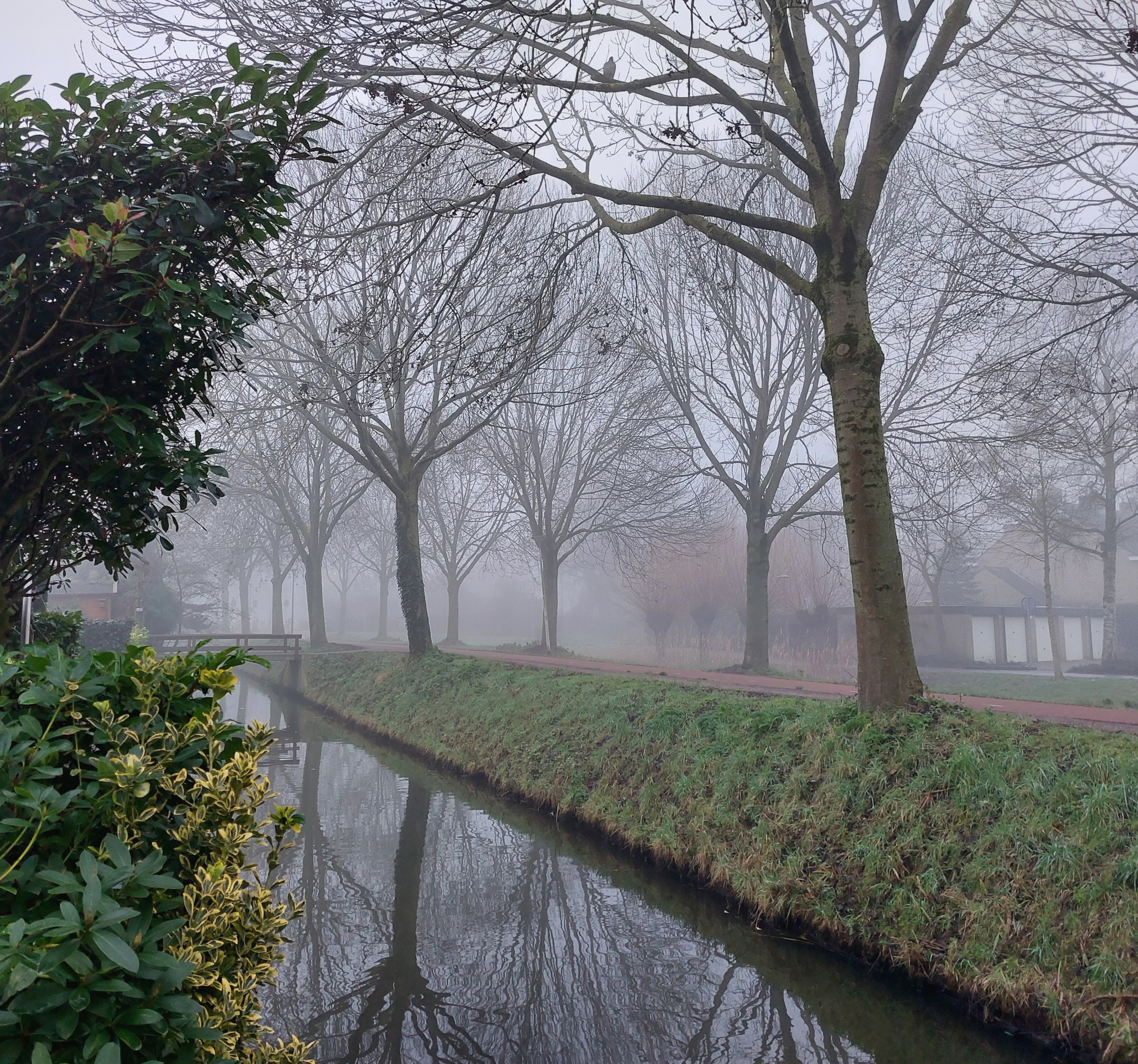 - Vandaag ook weer potdicht, de spoorbomen van de metro (op 90 meter hier vandaan) zijn niet te zien.