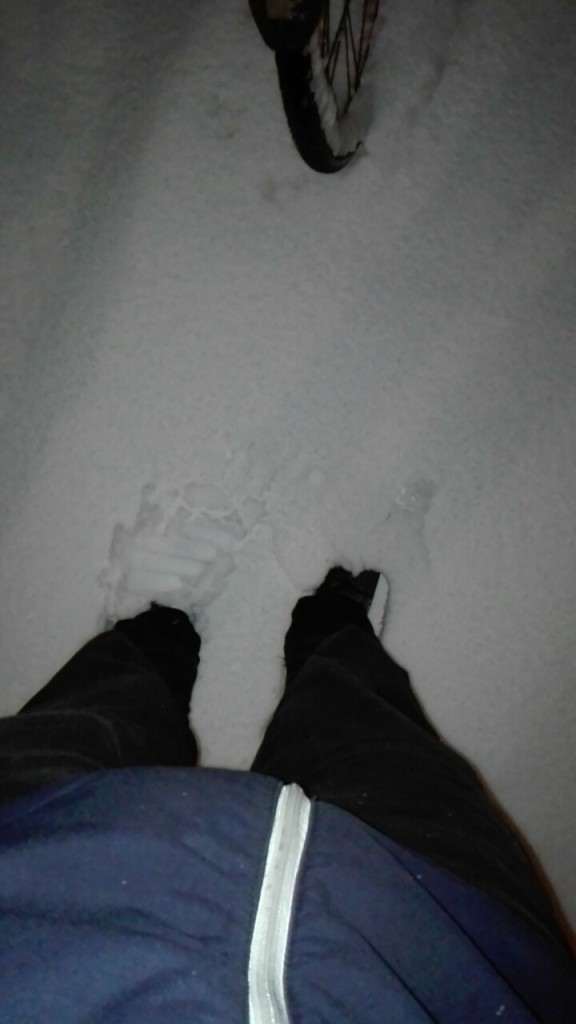 Ik had die maandag een deeltentamen in een gymzaal, dus alleen met ramen nabij het plafond. Toen we naar binnen gingen was het grijs en somber, toen we klaar waren was het inmiddels matig tot zwaar aan het sneeuwen. Ik ben toen met een vriend van me van de TU Delft Campus naar de Jumbo gefietst om boodschappen te doen voor het avondeten. Over dat stukje van 1.5km hebben we ruim een kwartier gedaan. Ook tijdens het koken bleef het maar doorsneeuwen, op de tv hadden we de live file-informatie staan, op een gegeven moment was er geen enkele snelweg meer vrij van oranje en rode kleuren.
