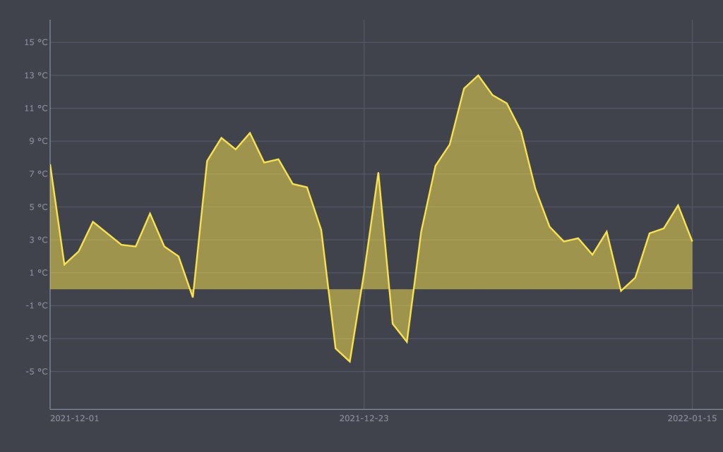 grafiek: Gemiddelde temperatuur 01-12-2021 t/m 15-01-2022