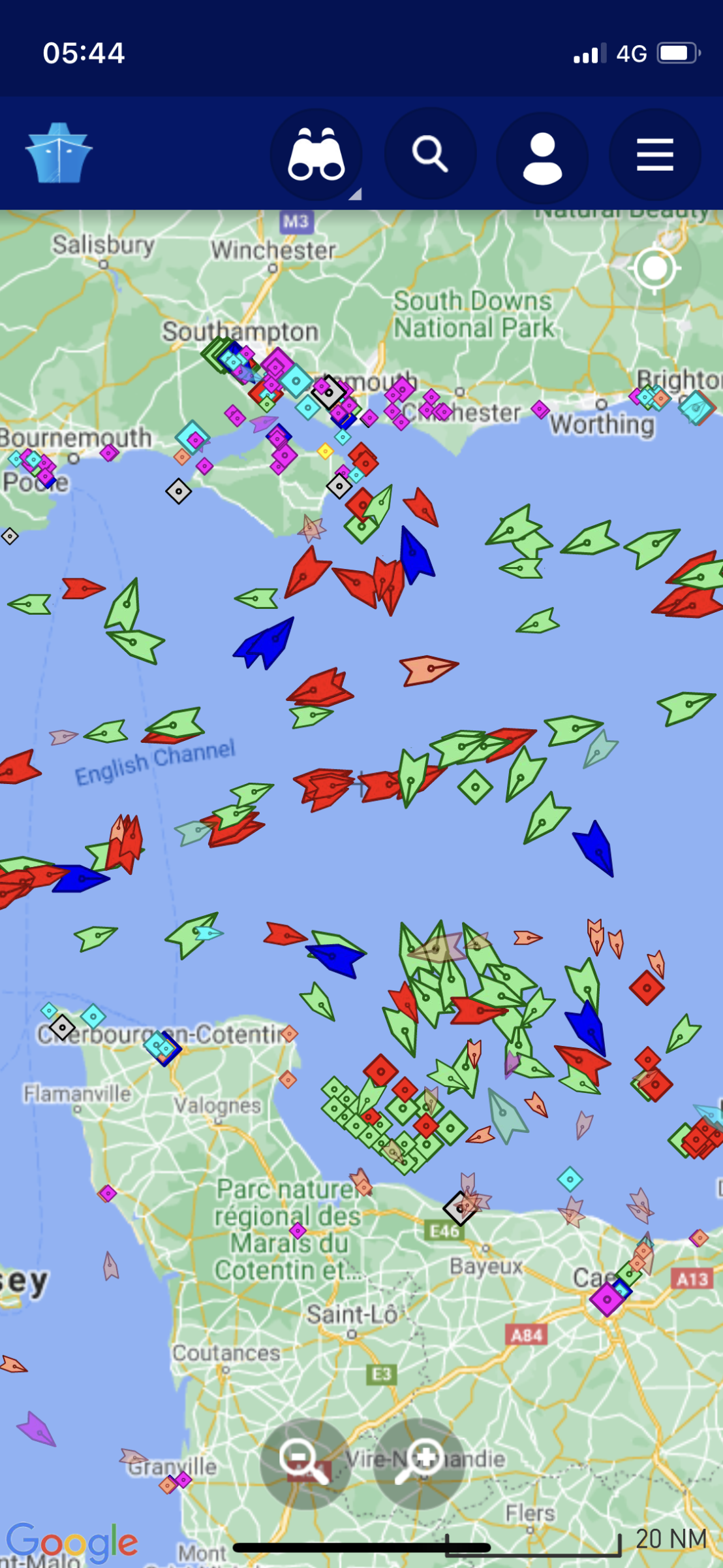 Wij liggen op dit moment samen met behoorlijk aantal overige schepen te schuilen in de beschutting van Normandie, ten zuidoosten van Cherbourg.